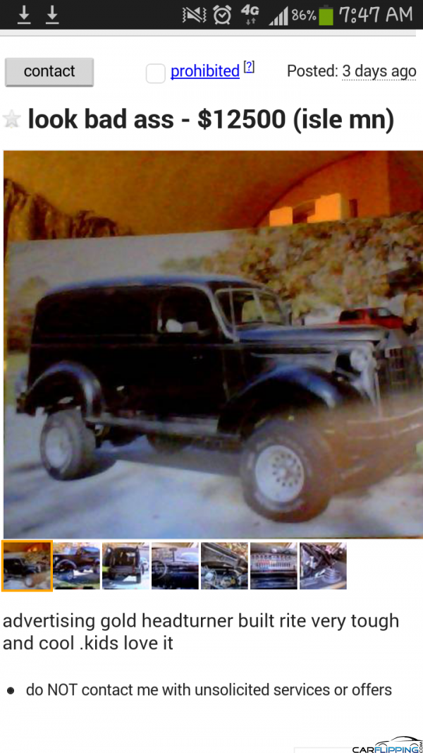 If you want to sell cars for a profit, you want to post high quality ads in order to boost your credibility as a seller. This is a perfect example of how not to advertise your classic car for sale. Photos of photos are not high quality. Either is describing the car as bad ass! Carflipping.com definitely gives you the tools to master the art of selling. Thank you!